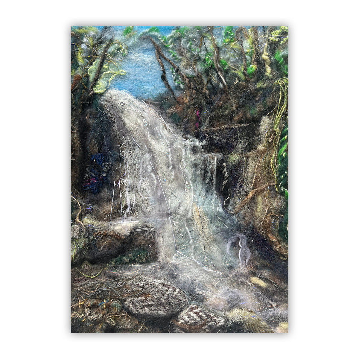 Using my mixed fibre medium, I have used wool to bring this landscape to life creating captivating textures, bold colour profiles and dramatic shadows.