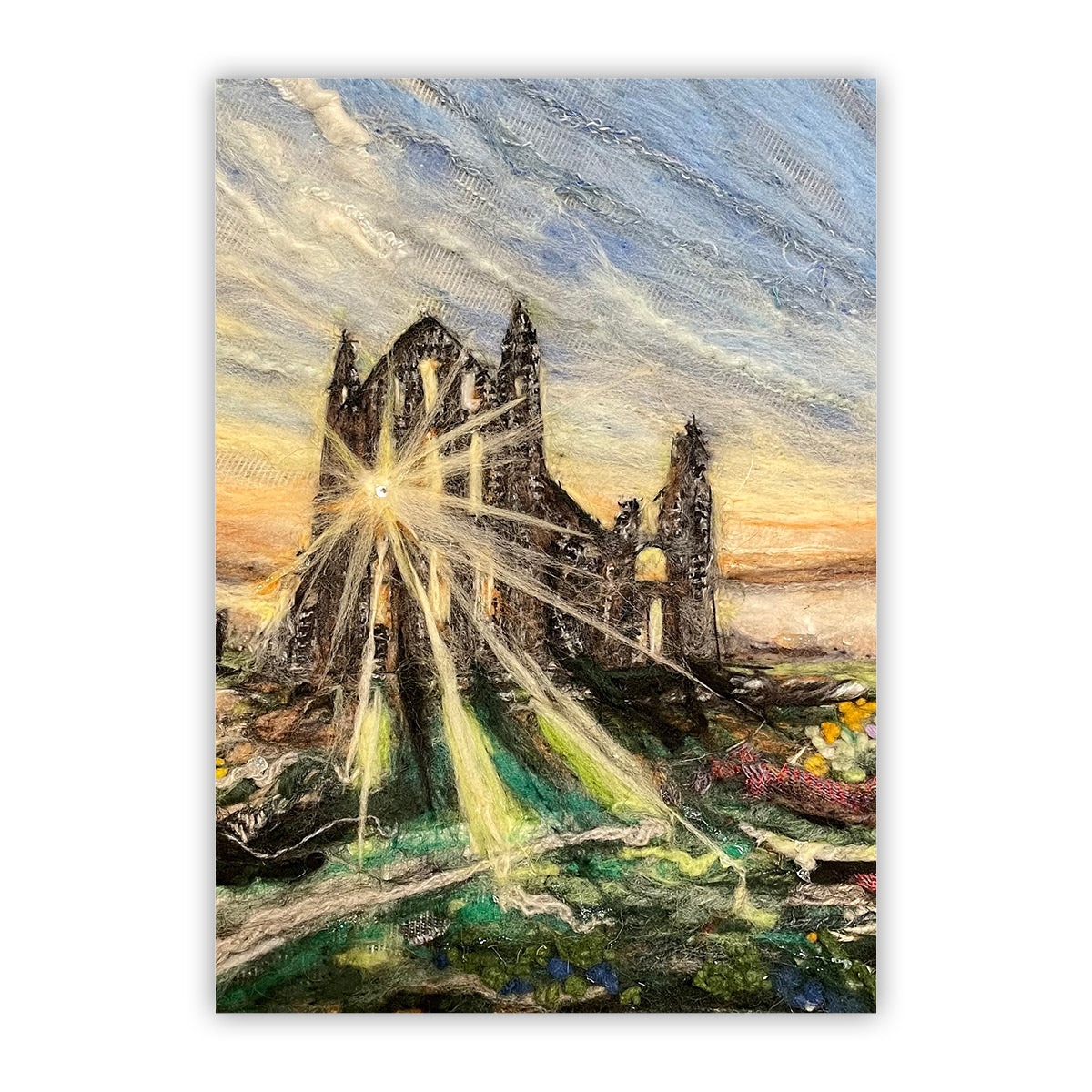Using my mixed fibre medium, I have used wool to bring this landscape to life creating captivating textures, bold colour profiles and dramatic shadows.